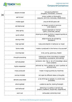 Compound Adjectives ESL Games, Worksheets and Activities