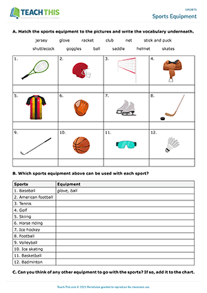 Sports Equipment Worksheet Preview