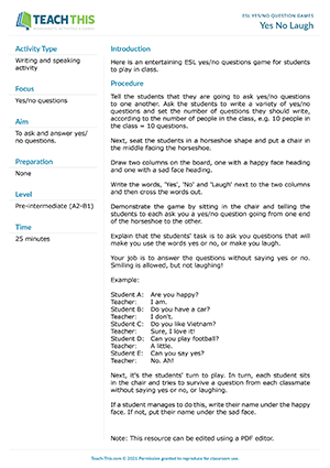 ESL Yes/No Questions Game - Grammar: Writing and Responding to Questions - Any Level - 20 minutes